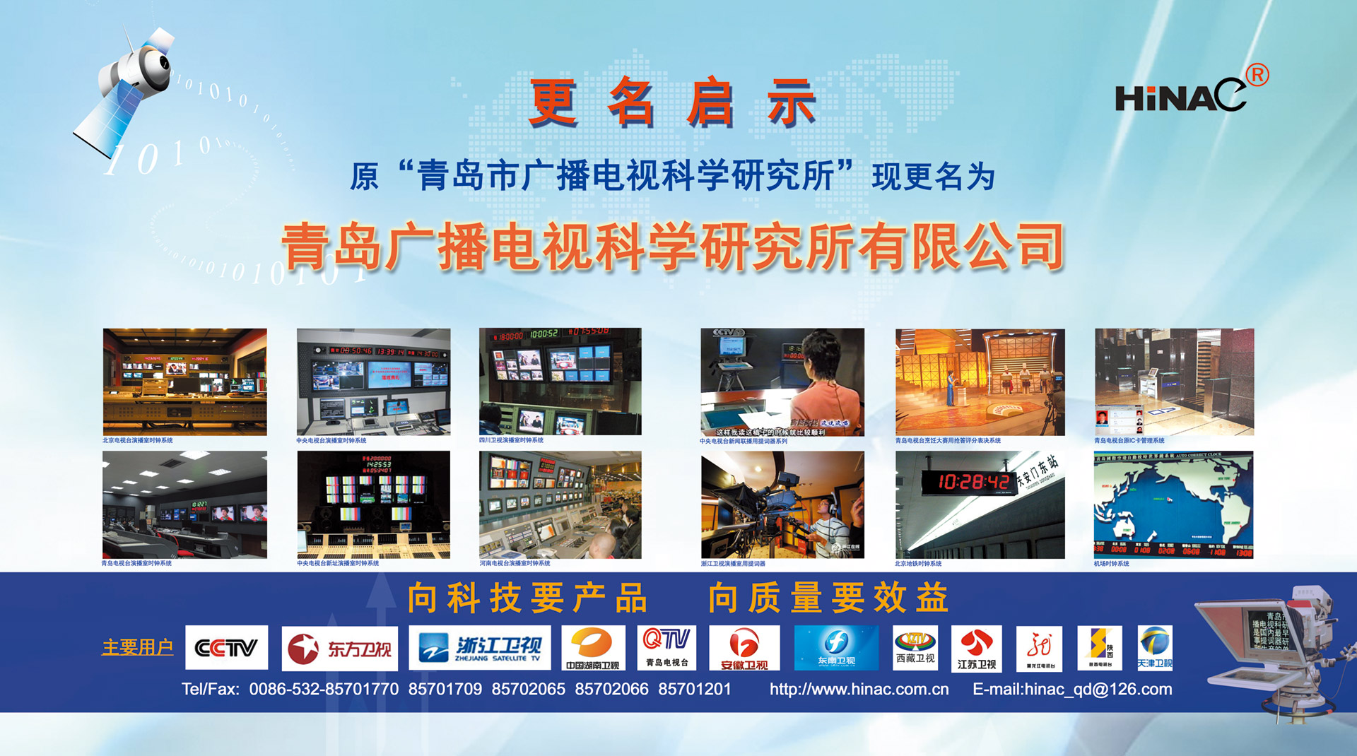 25年不悔的執(zhí)著追求! 25年不懈的專業(yè)堅持! 青島廣播電視科學(xué)研究所有限公司(簡稱青島廣電所)以其對廣電科技事業(yè)無限的熱愛,以及為爭做中國最優(yōu)秀廣電產(chǎn)品供應(yīng)商的美好理想,25年如一日,深耕廣電設(shè)備這塊沃土,已經(jīng)形成且被市場高度認可的成果有: TVZ系列GPS/北斗自動校時鐘系統(tǒng) TC系列電視播音提詞器及電視直播系統(tǒng)整體解決方案 TL系列泰麗訊源指示系統(tǒng) QD系列搶答表決評分系統(tǒng) IC系列廣電一卡通管理系統(tǒng) 同時向:廣電設(shè)備集成商、地鐵輕軌信號系統(tǒng)設(shè)備供應(yīng)商及其它業(yè)務(wù)方向創(chuàng)新、拓展、前行! 青島廣電所在國家廣電傳媒事業(yè)不斷發(fā)展的今天,愿意和您攜手并進,為我們共同的事業(yè)發(fā)展添磚加瓦開拓創(chuàng)新。愿意和您一道,把工作中的一個奇思妙想轉(zhuǎn)變?yōu)橐豁梻?..